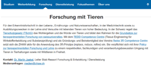 Universität Basel: Website zur Forschung mit Tieren, jetzt auch in englischer Sprache verfügbar. Link
