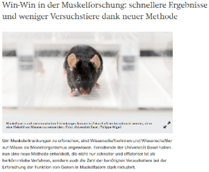 Universität Basel: In Pressemitteilungen (und damit verbundenen Beiträgen in sozialen Medien) werden systematisch Tiere in der Forschung erwähnt, z. B. Link