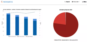 Novartis: Informationen auf der Webpage https://www.novartis.com/investors/reporting-and-transparency-hub/animal-research einschliesslich interner und externer Tierzahlen im Verhältnis zu den Ausgaben für Forschung und Entwicklung sowie 3R-Beispiele.
