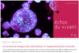 UNIL: Die Fakultät für Biologie und Medizin hat im März 2023 einen gedruckten Newsletter zum Thema Tierversuche und ihre Alternativen veröffentlicht. Er wurde an Schulen der oberen Sekundarstufe und deren Biologielehrpersonen in der Westschweiz verteilt. Link