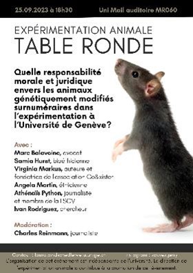 UNIGE:Organisation einer Podiumsdiskussion über das Schicksal überzähliger Versuchstiere (auf Anregung einer Gruppe von Studierenden, die vom Büro für tierexperimentelle Forschung unterstützt wird).