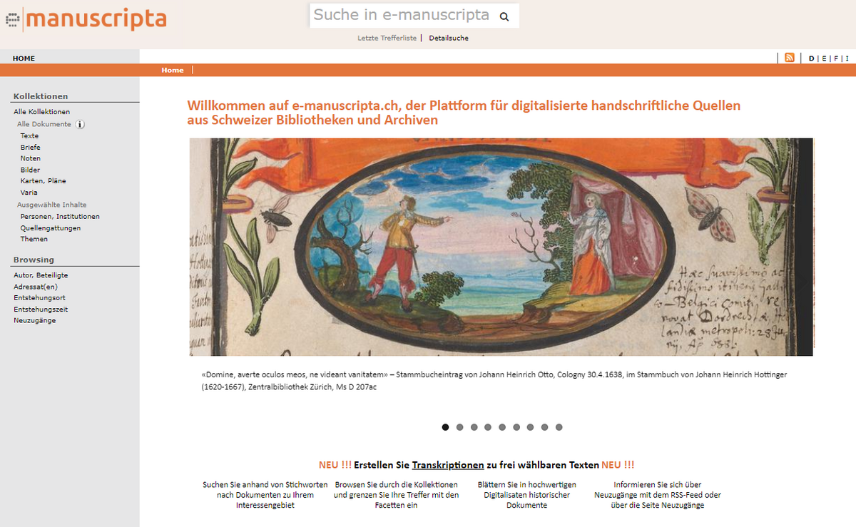 Das Transkriptionstool erlaubt es allen Nutzer*innen von e-manuscripta.ch selbstständig Transkriptionen zu den auf der Plattform publizierten Digitalisaten einzugeben. Dank zur Verfügung gestellter, detaillierter Anleitungen lässt sich der Umgang mit dem Tool rasch erlernen. Die Redaktion führt eine Qualitätskontrolle durch und schaltet die Seite danach frei. Sämtliche Seiten, die mit Volltext befüllt werden, sind nach der Freischaltung durchsuchbar, wodurch die Inhalte der publizierten Titel besser auffindbar werden.
