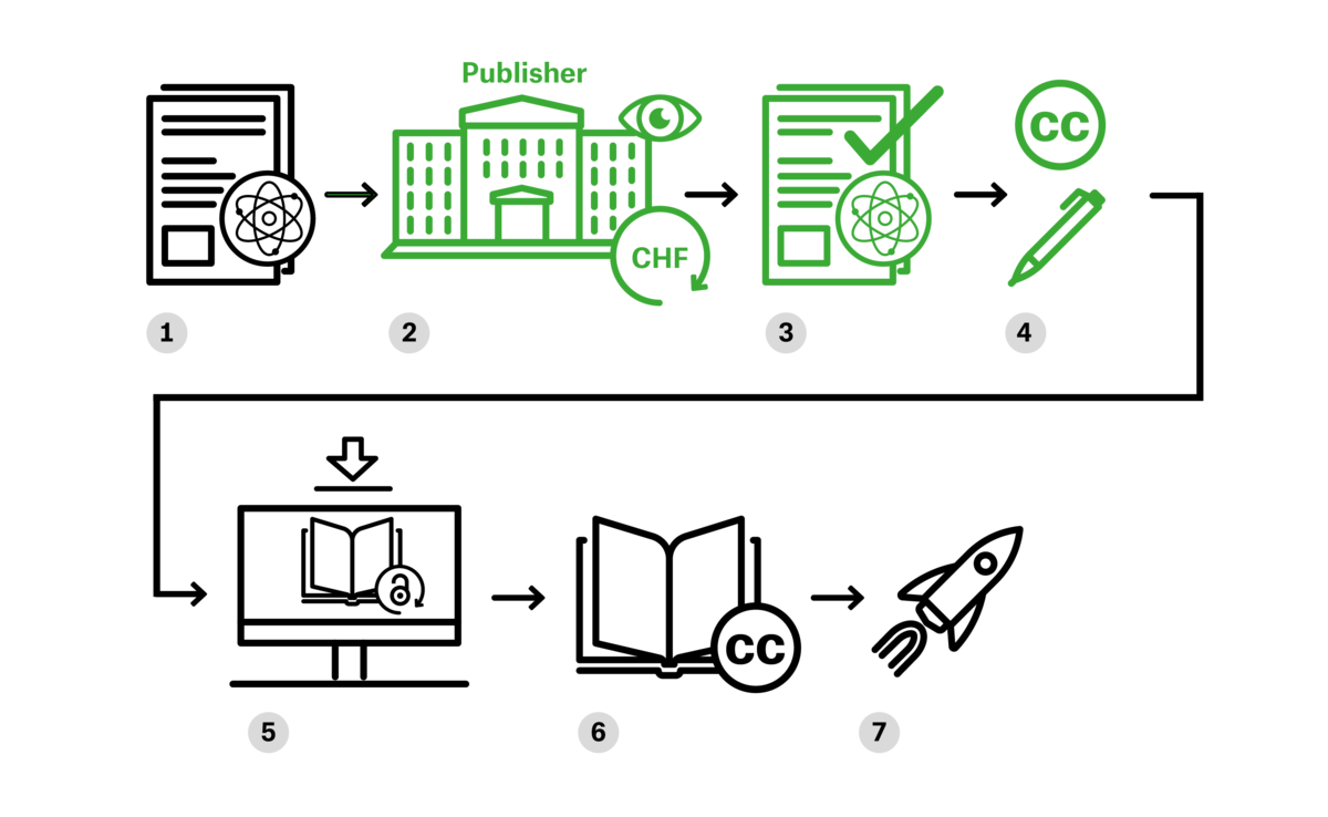 - Verbleib des Urheberrechts bei der Autorin oder dem Autor – Gewährung der «Lizenz zur Veröffentlichung» an den Open-Access-Verlag